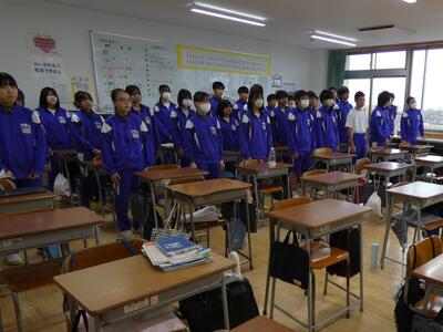 今日研究授業をした3人の教育実習生は明日までとなります。生徒の皆さん、ぜひたくさんの話をして、今後の生活につなげていきましょう。教育実習生の皆さん、残り1日たくさん学んでいってください。他の教育実習生の皆さん、残りの期間もよろしくお願いたします。