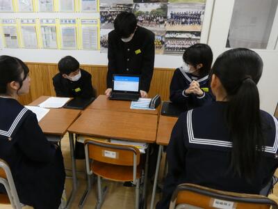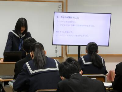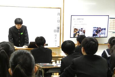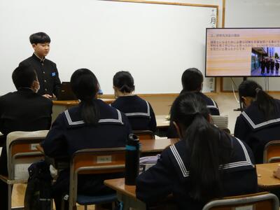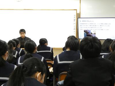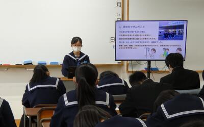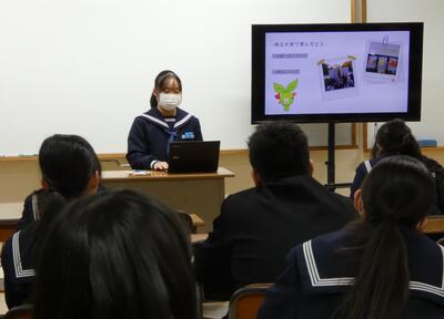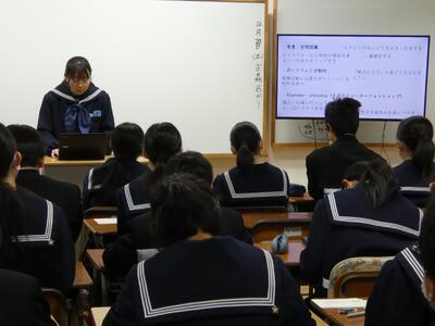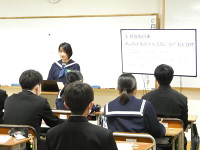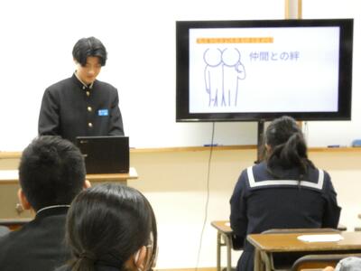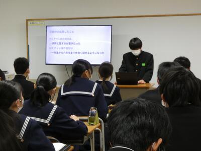 1学年は、キャリア教育の一環で大学や専門学校の見学や研修をした、さいたま自主研修のまとめについての発表を行いました。