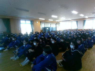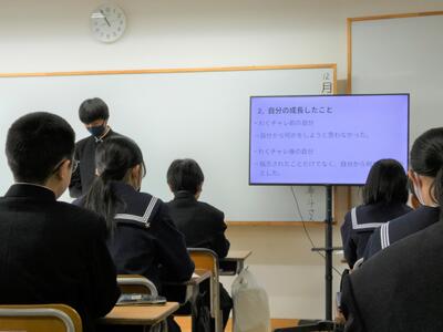 それぞれの学習を通して、今後の中学校生活や今後の進路にいかしたいことなど様々な学びがあったと思います。また、友人の発表を聞くことで新たな発見や学びもあったのではないでしょうか。今日得た、学びも今後に生かしていってほしいと思います。