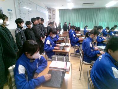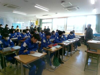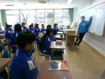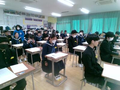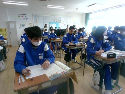 12月には、1年生が中学校生活をクイズ形式で説明したと思いますが、今日は実際の授業を参観しました。中学生たちはいつも通りに真剣に課題に取り組んでいます。