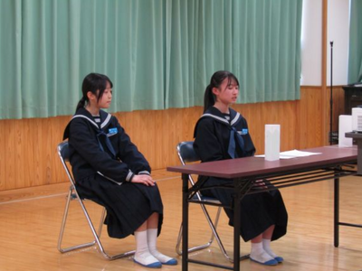 第2部では、14歳の主張、学年合唱、親子の手紙交換を行いました。