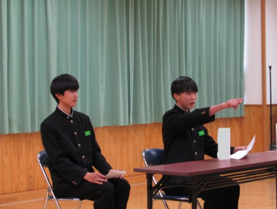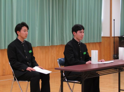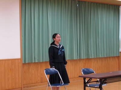 2月19日(木)に令和8年度後期生徒会選挙立会演説会を行いました。選挙管理委員長あいさつ、教頭先生のお話のあと、候補者の演説が行われました。生徒会長に3名、副会長に4名が立候補し、自身の想いを演説で伝えました。