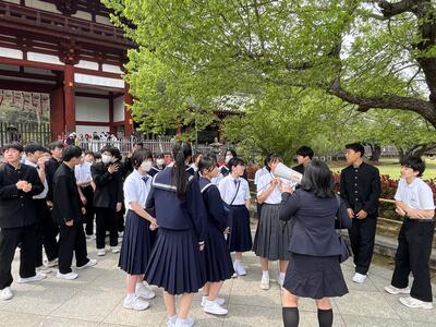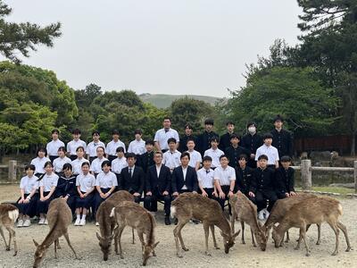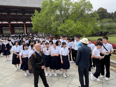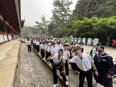 奈良公園に到着して、東大寺の大仏を見ました。生徒たちから歓声も上がっていました。すごいですよね。