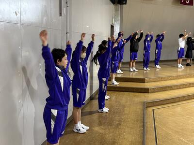 宿泊学習2日目の午前は、朝のつどいのラジオ体操からスタートしました。