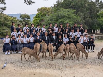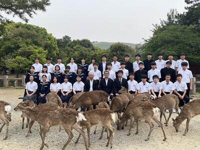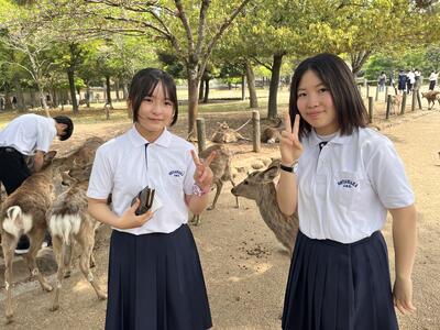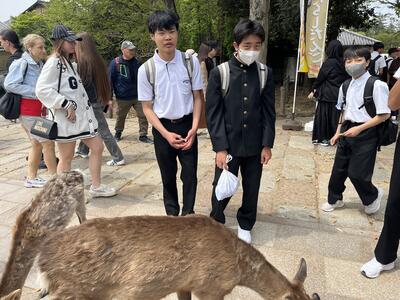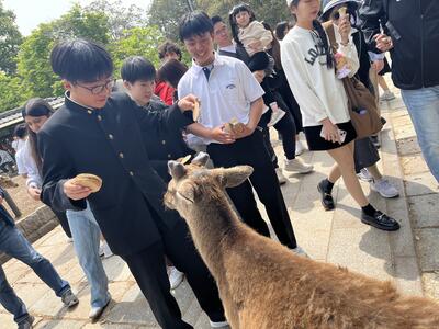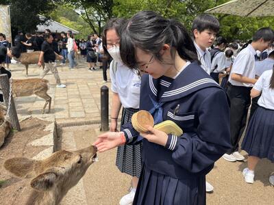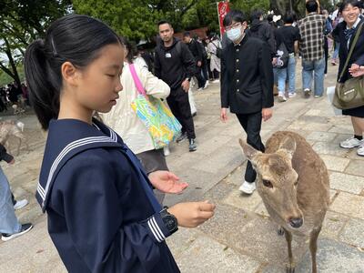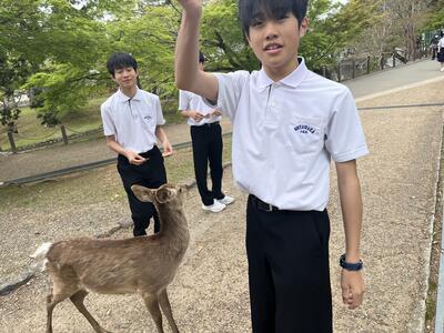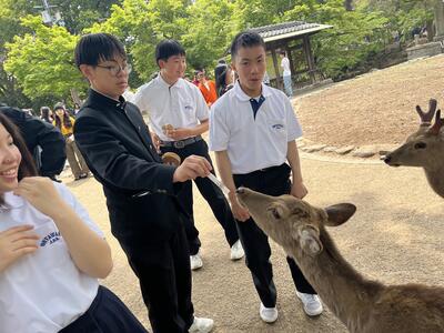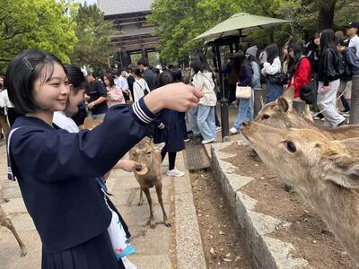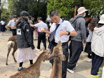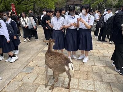 大仏の拝観の後は奈良公園で自由行動。ほとんどの生徒が鹿せんべいを買って鹿と戯れていました。鹿に制服をかじられた生徒もいます。