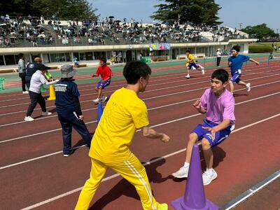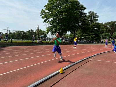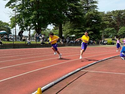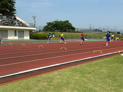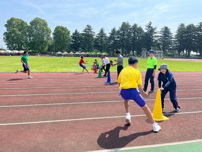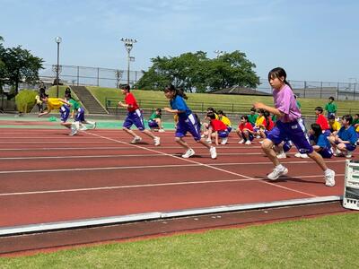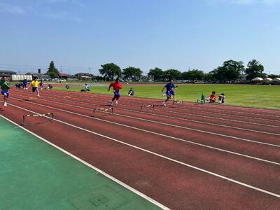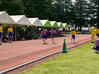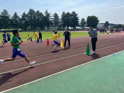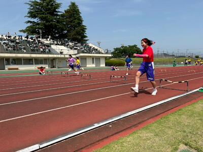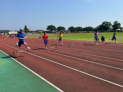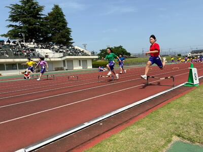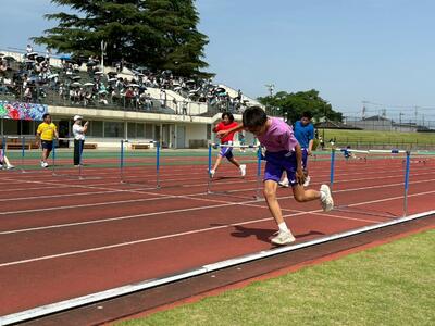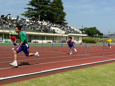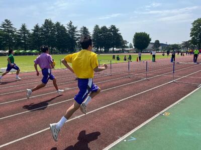 最初の種目は、個人種目。1年生から3年生まで障害走を行います。