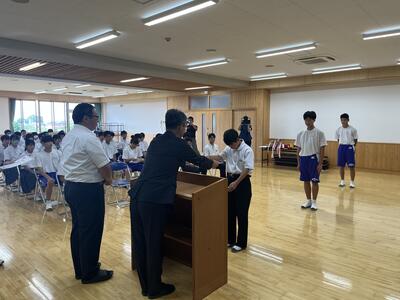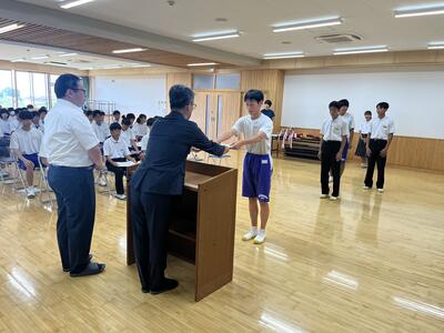 どの部も健闘して多くの入賞者がいました。表彰対象は、陸上競技部、剣道部、弓道部、卓球部、バレーボール部、バスケットボール部、柔道部、水泳部、野球部です。