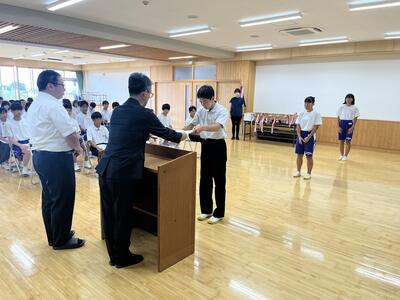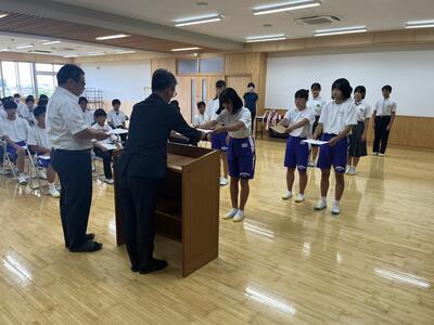 先日から県大会も始まっています。弓道部が関東大会出場を決めました。また、陸上競技部の選手の中で、通信陸上大会の結果から、全国大会、関東大会出場が決まった選手もいます。後日横断幕も掲示しますのでぜひご覧ください。明日からの夏休みに実施される県大会や合唱部や吹奏楽部のコンクールでも、大中生の活躍を期待しています。
