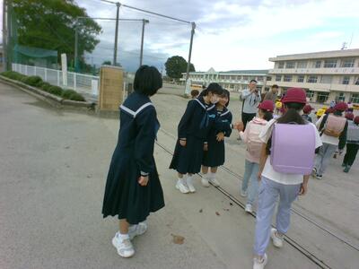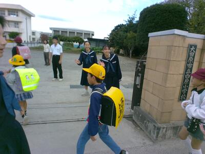 本日, 西原小学校であいさつ運動を行いました。