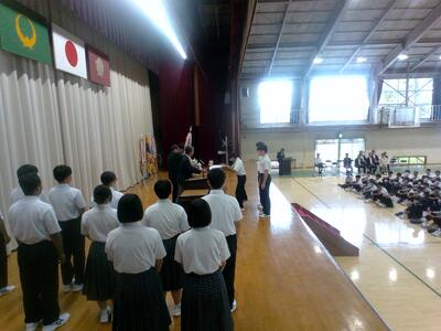 県新人大会や県中央祭、地区駅伝競走大会も近づいてきています。更に技術が向上するように明日からの秋休みでも頑張りましょう。また、冬季の強化に入る部活動もあると思いますので、春と夏に今以上の成績になるように頑張っていきましょう。起て、大中!