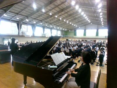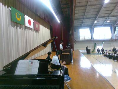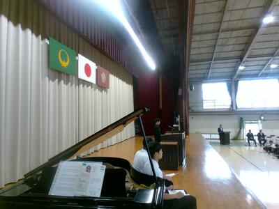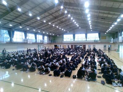 1時間目には体育館で始業式と生徒会認証式を実施しました。