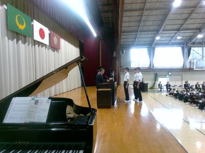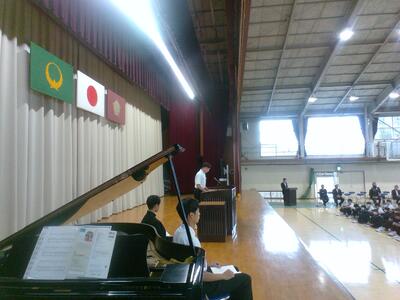 始業式の後は、先日那須地区で最優秀賞を受賞した少年の主張の発表も全校生徒の前で実施しました。
