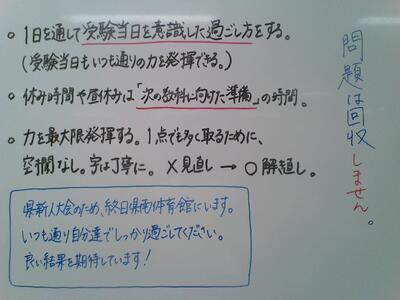私立受験までもう3ヶ月をきりました。県立受験も半年をきっています。1日1日を大切に学習に励んでいきましょう。
