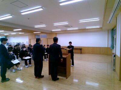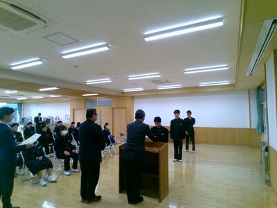 先日期翔祭で実施した「怪盗ダーツーリターンズ」の表彰も実施しました。授与は生徒会長からです。