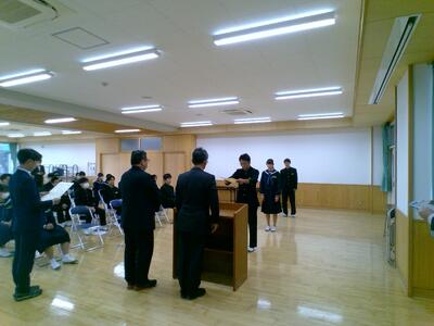 表彰対象は、陸上部、バスケットボール部、柔道部、野球部、駅伝部、合唱部、税についての作文表彰者、人権作文コンテスト表彰者でした。