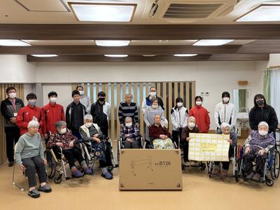 今年度はにちにちそうの皆さんにより生活を豊かにするために「どのような物が必要ですか?」と伺ったところ「ベッドテーブル」をと希望していただき、それを寄贈させていただきました。