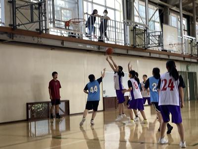 私たち女子バスケットボール部は、1,2年生合わせて9名と少ない人数ですが、那須地区ベスト4、そして県大会出場に向けて日々練習に取り組んでいます。経験者はもちろん、初心者でもバスケットボール大に興味のある方は見学に来てください。待っています。