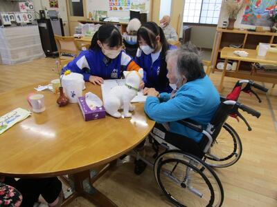3時間目の児童と生徒の交流会では、はじめにアイスブレイクをして、小学生の緊張した雰囲気を和らげました。