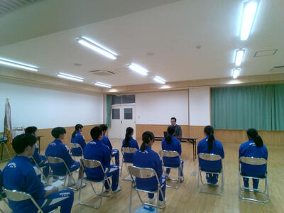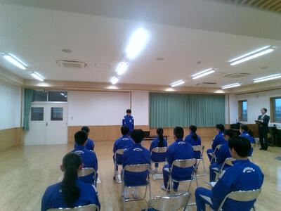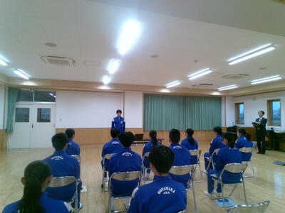 集会では、校長先生、生徒指導主事、各学年の代表から話がありました。