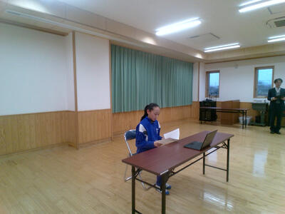 小学生の中学生に対する疑問をクイズ形式で説明しました。中学校のことを知ったり、先輩のことを知ったりして、小学生が安心して入学できるように工夫しています。司会進行も全て生徒が担当しています。